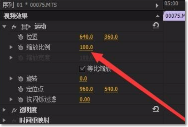 1、然后在效果控制窗口里,点开Motion,把Scale项的Uniform Scale点掉,然后调整Scale Height和Scale Width,把视频画面调整成满屏。