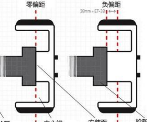 轮毂的偏距是指轮毂的安装孔内侧面(固定面)到轮毂中心线的距离。