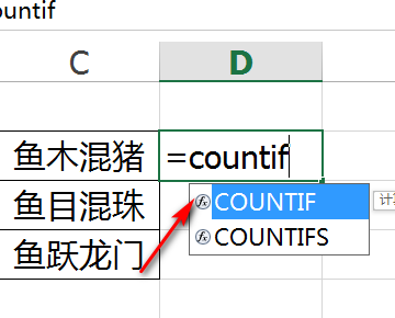 2、这里使用Countif函数进行判断,先输入=countif,如下图所示。