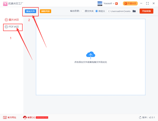 步骤1,下载软件后安装并打开使用,点击左边三个功能中的【PDF水印】功能,然后将需要添加水印的PDF文件导入到软件中,软件支持同时给多个PDF添加水印,节省时间。