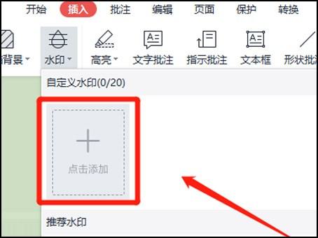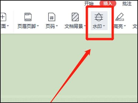 在工具栏里,找到【插入】功能界面中,点击【水印】下拉工具列表。