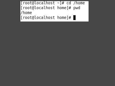 3、发现确实是root目录下,我们切换到/home目录下,切换命令:cd /home,再次用pwd命令查出在/home目录下。