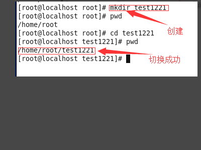 5、最后用同样的方式新建目录test1221并切换此目录,如图,就可以了。