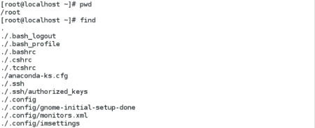 如果使用该命令时,不设置任何参数,则find命令将在当前目录下查找子目录与文件,并且将查找到的子目录和文件全部进行显示,如图,在/root下的子目录和文件全部显示出来(截取部分):