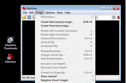 双击桌面 IrfanView 的图标,打开 IrfanView ,首先映入眼帘的是 English (英文)的操作界面。英语是国际交流的通用语言,所以软件作者通常都把默认的操作界面设置为英文。 尽管 IrfanView 的作者的母语是德语,但是 IrfanView 的默认语言却还是英文,毕竟相比于德语,懂英语的人还是要多一些。