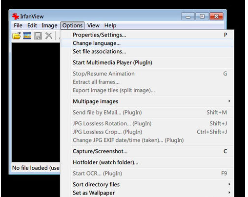 这时,再打开 IrfanView,咦,怎么还是英文,不要着急。选择【Options】->【Change Language...】。
