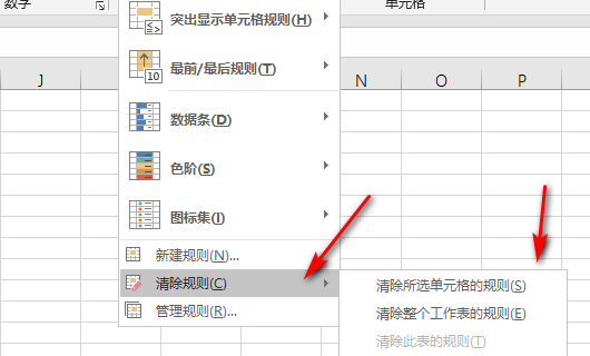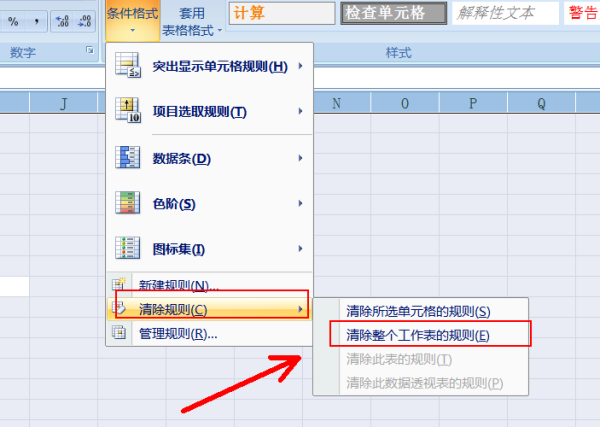 4、点击打开条件格式后,点击清除规则,清除工作表的规则即可。