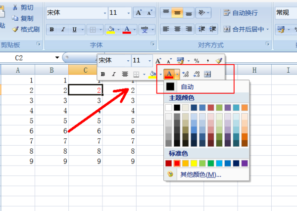 2、选中单元格后,在工具栏字体中设置为黑色即可。