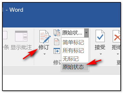4、在审阅的界面下方先点击修订,并选择原始状态即可完成。