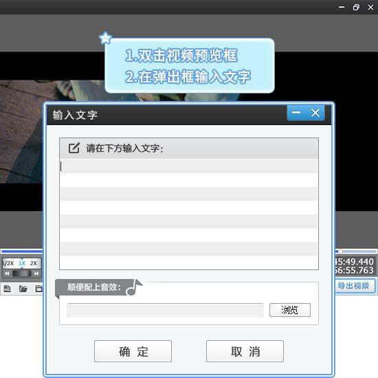 在“字幕特效”面板下,双击右侧的视频预览区,在弹出框中即可输入文字。