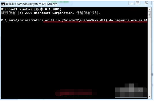 for %1 in (%windir%\system32\*.dll) do regsvr32.exe /s %1 回车。到屏幕滚动停止为止。