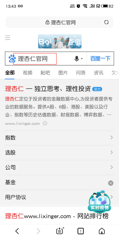 3、搜索数秒后,即可进入理杏仁官网。