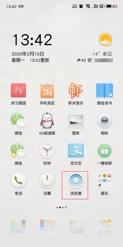 1、在手机上找到浏览器,并点击进入。