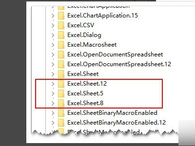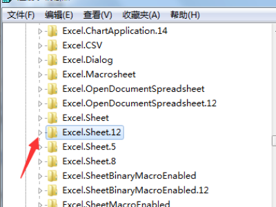4、找到HKEY_CLASSES_ROOT\Excel.Sheet.12 并展开。