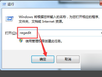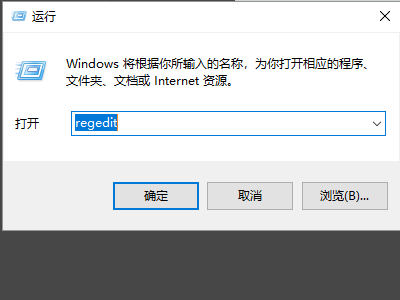 2、在窗口中输入regedit,点击确定后打开注册表。