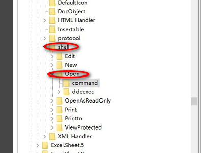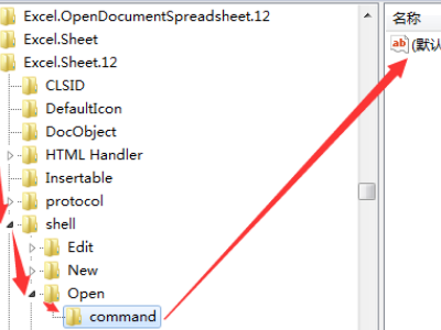 5、依次进入Excel.Sheet.12\shell\Open\command下。