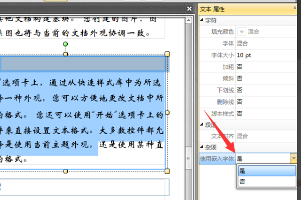 4. 接下来,双击PDF文档中的文本以进入编辑状态。此时,您可以将“使用嵌入字体”设置为“属性”窗口中的“是”项。