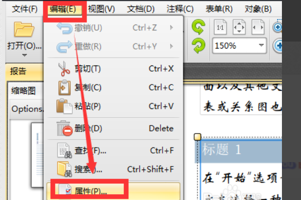 3.在这里,为了将字体嵌入到PDF文档中,我们点击“编辑”-“属性”打开“属性”窗口。