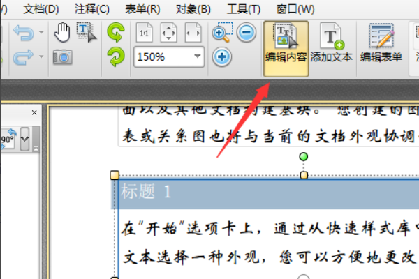 2. 由于PDF编辑器可以编辑和修改PDF文档,我们可以直接点击“编辑内容”按钮来编辑PDF文档的文本。