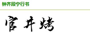 与之对应的字体版本见下图,图中上方绿色文字是字体名称(钟齐段宁行书、方正古隶繁体 等)。
