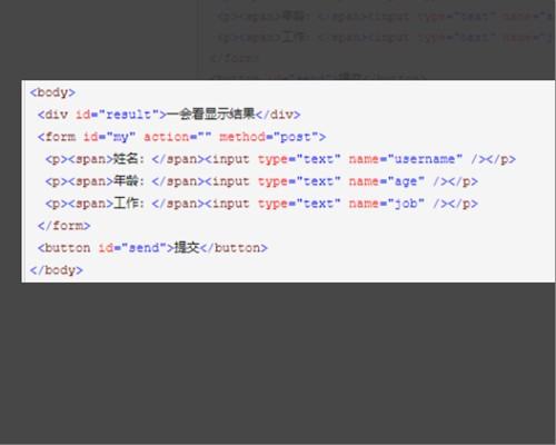 3、html文件先引用所需的类库jquery文件,其次在body部分,以一个简单的表单提交为例。