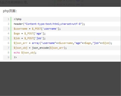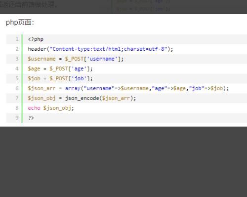 5、php文件的编写部分,主要使用$_POST来接受ajax传输的数据,并可以返回不同类型的数据。如echo结果或者json_encode转码成为json格式的数据返还给前端做处理。