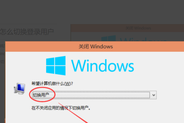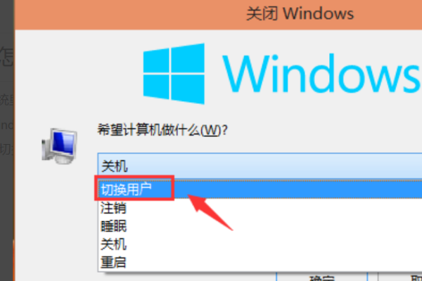 二、然后,在“关闭Windows”窗口中选择“切换用户”,点击确定。