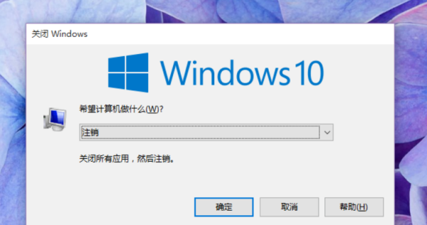 6、接下来需要注销一下当前登录的系统账户,在桌面页面中按下Alt+F4按键,然后在弹出的页面中选择【注销】按钮,注销当前登录的系统账户;