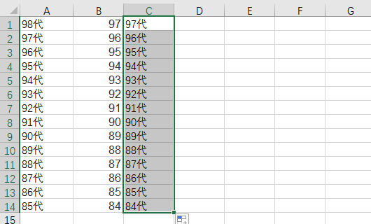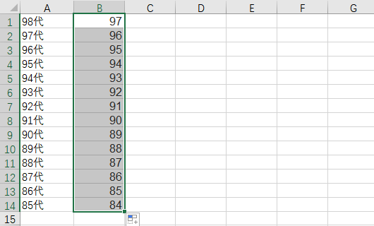 然后使用快捷键ctrl+e,从这个空白格开始,所有的数字就会被提取出来。