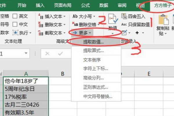 2、点击“更多”下拉菜单,点击“提取数值”.