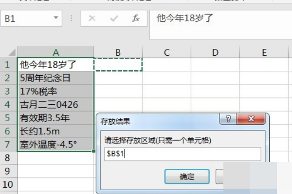 4、此时跳出“选择存放区域”对话框,把提取的数值放在你想要存放的区域,点击“确定”。
