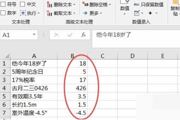 excel 的单元格里面有文本也有公式生成的数值,怎么将数值提取出来