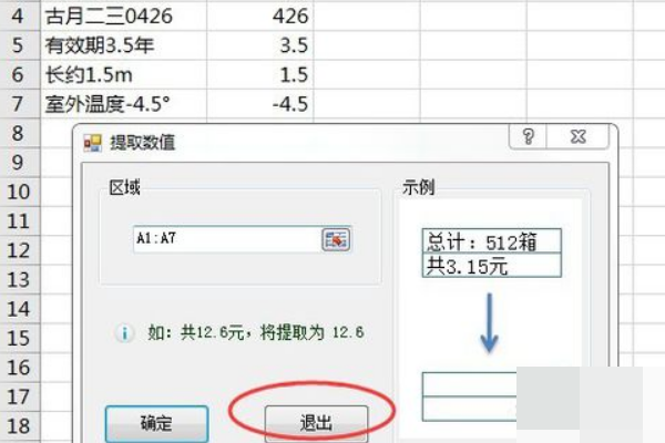 5、再次跳出“提取数值”对话框时,点击“退出”。