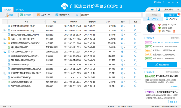 广联达云计价平台GCCP5.0是迎合数字建筑平台服务商战略转型,为计价客户群,提供概算、预算、结算阶段的数据编制、审核、积累、分析和挖掘再利用的平台产品,于2015年研发完成并投放市场。