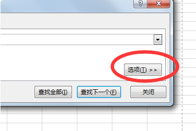 2、然后点击“查找”对话框中的“选项”。