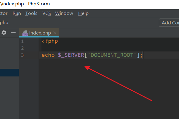 2、在index.php中,输入:echo $_SERVER['DOCUMENT_ROOT'];。