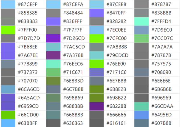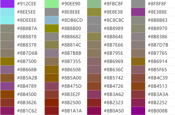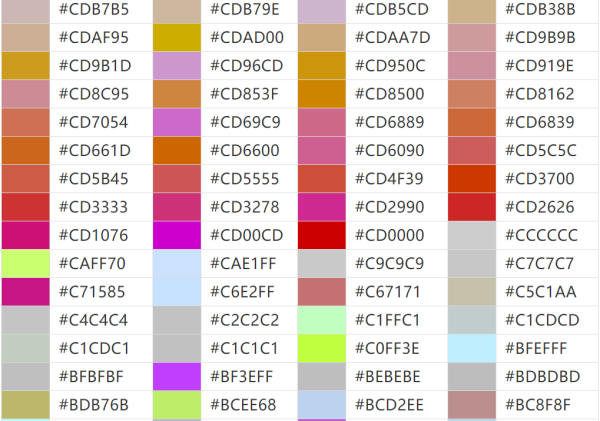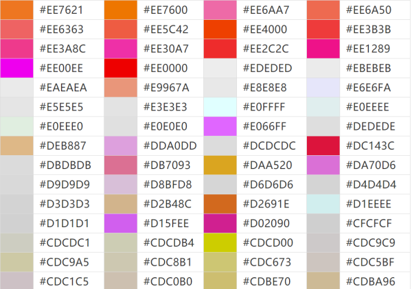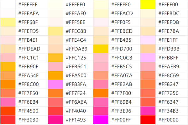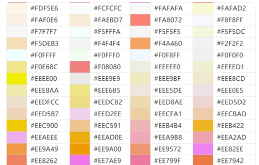 各种颜色的代码是什么
