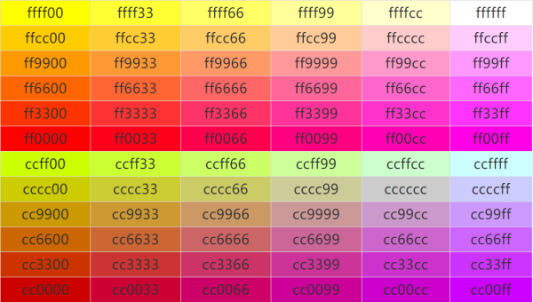 #FFFF00 黄色