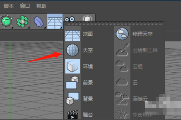 5、随后,完成上述步骤后,关闭渲染设置窗口,单击灯光,或直接创建天空,如下图所示,然后进入下一步。