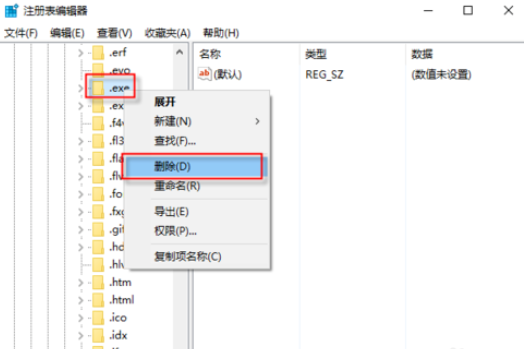 [-HKEY_CURRENT_USERSoftwareMicrosoftWindowsCurrentVersionExplorerFileExts.EXE]