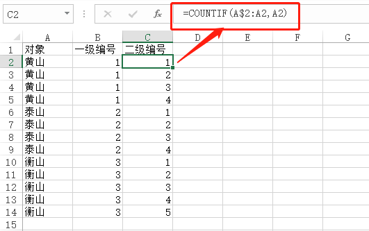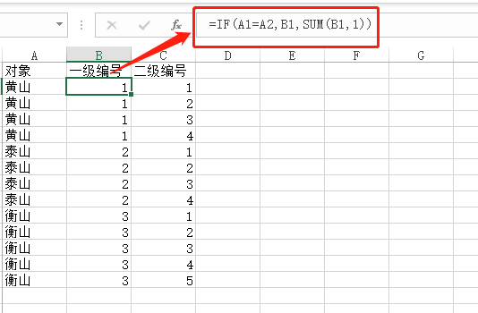 第二列用函数COUNTIF,判断A列是否相同,在同类自增,不同类重新计数。示例函数=COUNTIF(A$2:A2,A2)。
