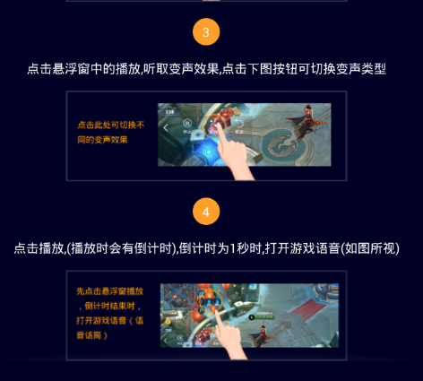 3、点击悬浮窗中的播放功能,就可以切换变声的类型,变声完毕后就可以打开游戏录音了。