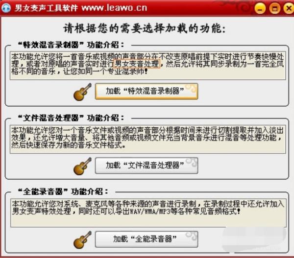 2.接下来就进入了变声器的主界面,如下图所示,根据我们的需要选择加载的功能。