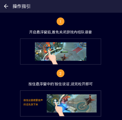 2、用户开启了悬浮窗之后,进入游戏时将组队的语音关闭,按住悬浮窗中按住说话按钮进行录音。