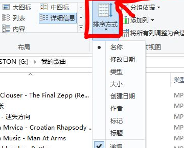 在当前放音乐的文件夹:点击右键-排列方式-名称(递增)
