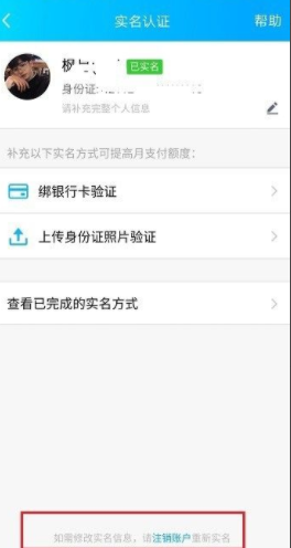 4、进去实名认证界面之后,在下方可以看到如果要修改实名认证,需要先注销账户,这里只是注销支付账户,不会注销qq号,注销支付账户之后可以重新开通。