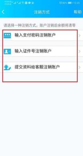 5、满足注销支付账户的要求之后,选择一种方式验证,进行注销,重新开通的时候,修改实名认证信息就完成了。