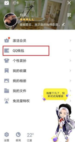 1、打开qq侧边栏,点击qq钱包。
