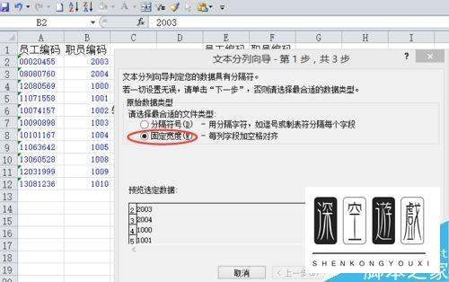 2、在点击分列出来的命令框中,点择固定宽度,点击下一步,在点击下一步;