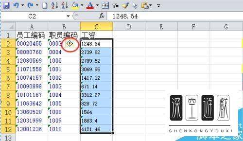 1、首先我们选中要转化的区域(选中C2到C12),单击左上方出现图标的下拉按钮(光标放在图标上即会出现下拉按钮);